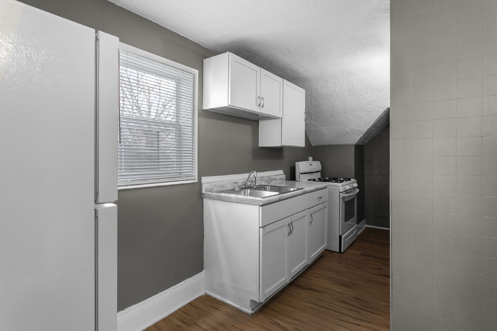 Spacious 1 bedroom top-floor unit. Private back yard entrance and parking. Water, sewer, and trash are included in the rent; tenant is responsible only for electric and gas. Proof of income equal 3x rent is required. No criminal or eviction history within the past three years. There is no minimum credit score requirement. The application fee is $50 per adult. Email for more information or to schedule a showing.